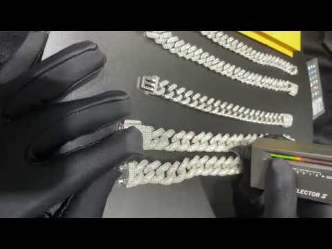 The chain used for the Cuban links is VVS moissanite, and each link is embedded with three rows of moissanite because they are so lustrous that they catch light from any angle and do not fade or become cloudy after years of use.